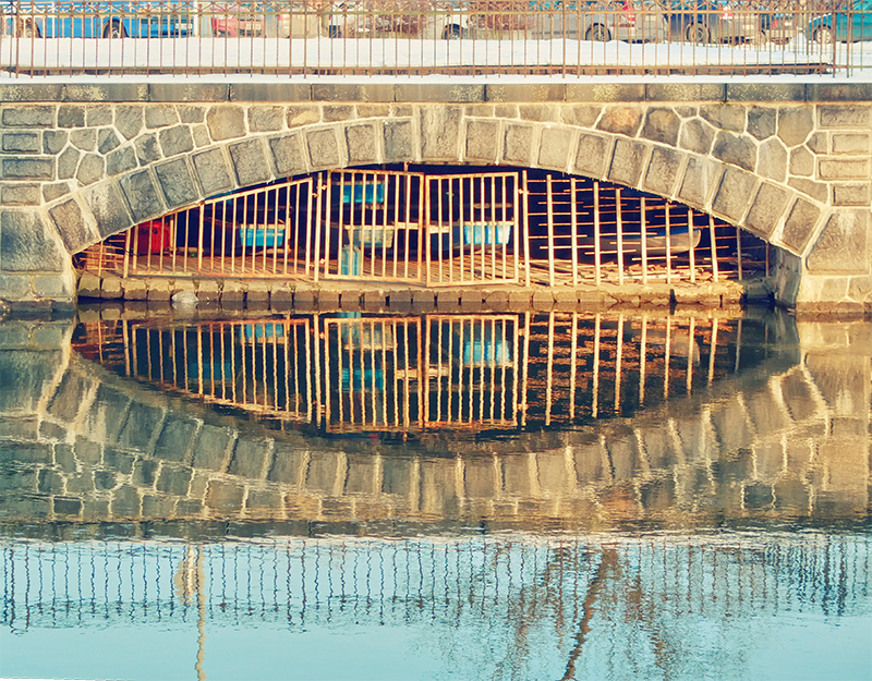 I continued my stroll down past the old square and further East towards the automatic mills, which have been on this site in one form or another since the late 16th Century. There’s a number of quaint little houses in this area, and lots of little hidden details. I had completely walked past the boat while crossing the iron bridge to the mills, before I realised it couldn’t have been a boat, it was on land. Sure enough when I turned back to investigate, it was a boat alright, but now it lies up out of the river and serves as a restaurant, although it seems to be closed for the Winter period.