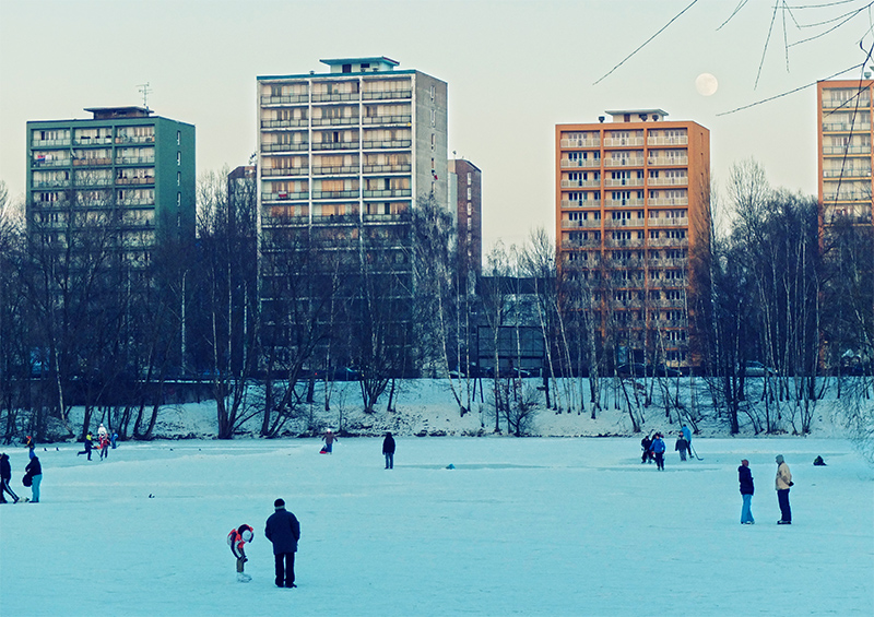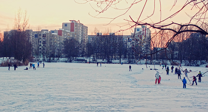 One thing I did enjoy and probably always will is the feeling of walking on a frozen lake. I know in previous posts I mentioned that scene from the Omen 2 where Damien drags a poor defenseless soul to his doom under the ice on a frozen lake, but I had to put that thought aside and go for it. When you feel the whole ice sheet move as you step onto it, that’s not comforting…at all. But then you look out and see families running and jumping on the ice, fathers carrying their kids on their shoulders, mothers sitting down with babies while their kids play ice-hockey and you realise you look like a total wuss. So ya gotta suck it up and step onto that surface that just days ago was translucent and moving. It’s a weird sensation, very unnerving but exhilarating at the same time. The temperature is back up around zero now so probably won’t get another chance to walk on ice until next Winter, might just invest in some skates and see what all the fuss is about.