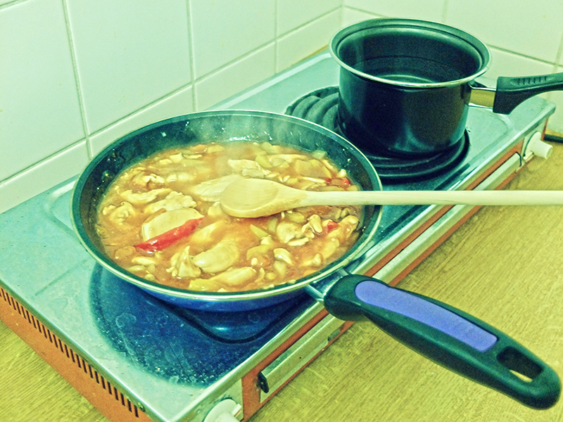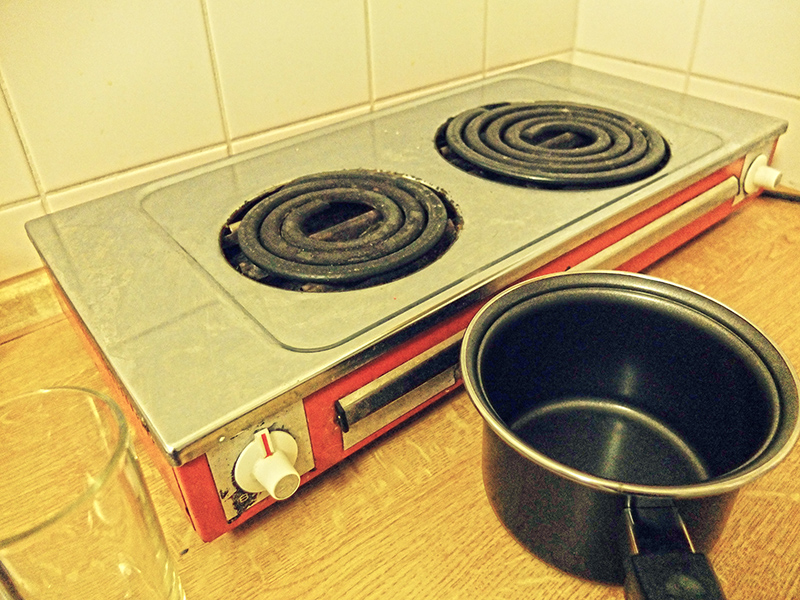 Our previous kitchen, although small had all the mod-cons like an oven, stove, microwave, kettle, etc. This kitchen however has a two-ring stove, and a fridge/freezer……and that’s it. When we first moved in, only one ring on the stove worked but they promptly replaced it with a shiny new one. Sinead’s colleague was really generous and gave us their “Remoska“, which is basically a giant saucepan with a heating element in the lid so we can make pizza….yay!.