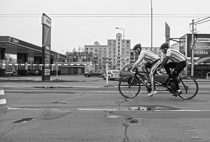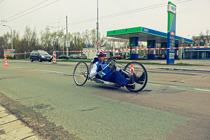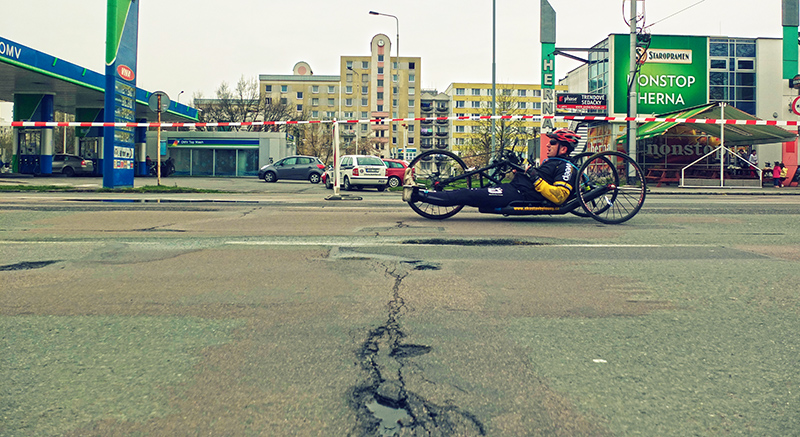 The Pardubický vinařský půlmaratón or Pardubice Wine Half Marathon is an annual athletics event that takes place in Pardubice each year. It actually caught us by surprise when Sinead looked out the window and exclaimed “Oh, the road’s all sealed off, something must have happened”. I jumped up and immediately grabbed my camera expecting to see a crime scene. But the reality was much better. A cyclist rode past, and then another, and another. It was then we realised it was an organised event, and Sinead remembered reading about it earlier in the week. We quickly formulated a plan to check it out and find out where the epicentre of the action was. I took a few photos of the cyclists and hand bikers going past outside our apartment before heading back up to do some chores.