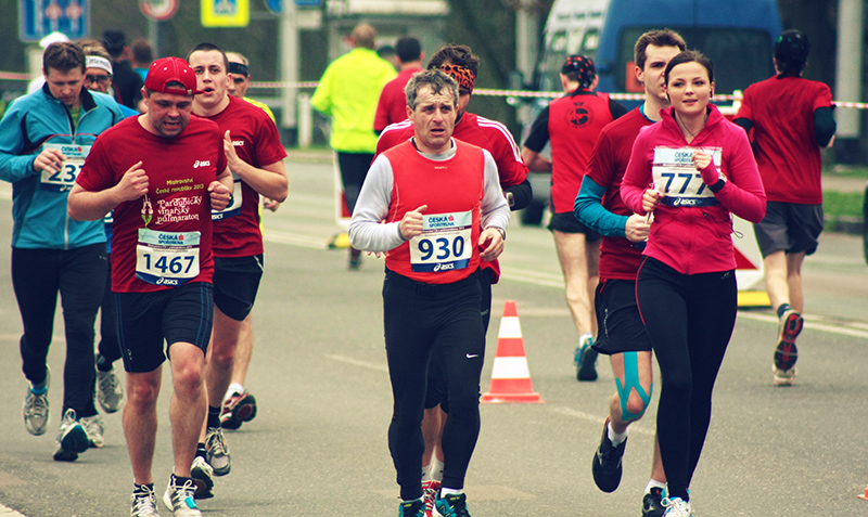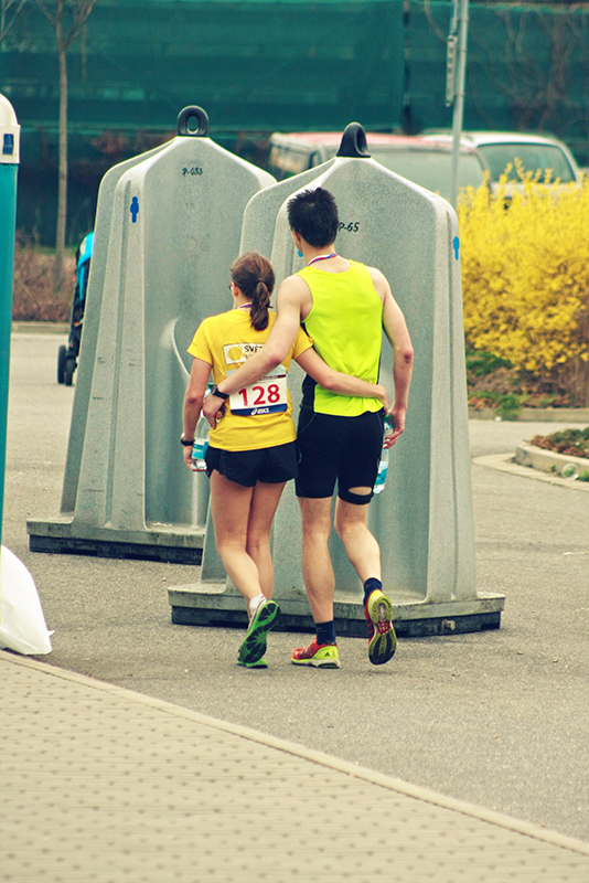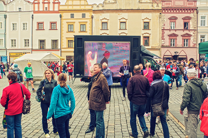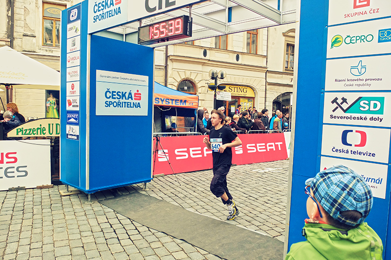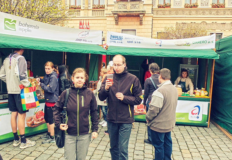 We strolled down towards the town centre, past the rest station, where runners were handed sponges soaked with water to cool themselves off. It wasn’t a scorcher of a day but it was pretty warm all the same. When we reached Pernstejn Square, the heart of the event many people had finished and were walking home with their medals around their necks. Some were doing warm down exercises and rehydrating with water and energy drinks, others were enjoying a nice cold beer.