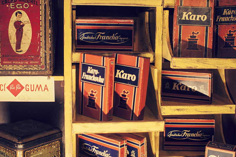 Pardubice is well known for a number of products, perhaps most notably Semtex., the plastic explosive. It is also the site of a factory that plays a big part in the story of Cafe Bajer. What is now the Kávoviny factory near the train station used to be the site of the Franck coffee company which made substitutes for classic coffee. The best known was “Franck’s Genuine Coffee Supplement”, Franckovkafor short, which came in oval red packets or brown boxes. Under the name “Karo-Franck” it was sold in the form of cubes. Another favourite was a rye coffee called “Perola.