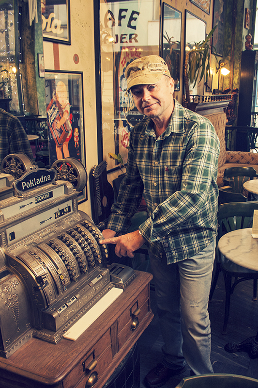 When the weather takes a turn you can seek shelter in the conservatory area where you really get a sense of what this place is all about, an homage to coffee, the Austro-Hungarian empire and Art Nouveau and Art Deco stylings. Milan Bajer, the owner of Cafe Bajer who runs the business with his sons is a big antiques fan, as evidenced by the sheer amount of fascinating paraphernalia that dots every nook and cranny of the cafe.