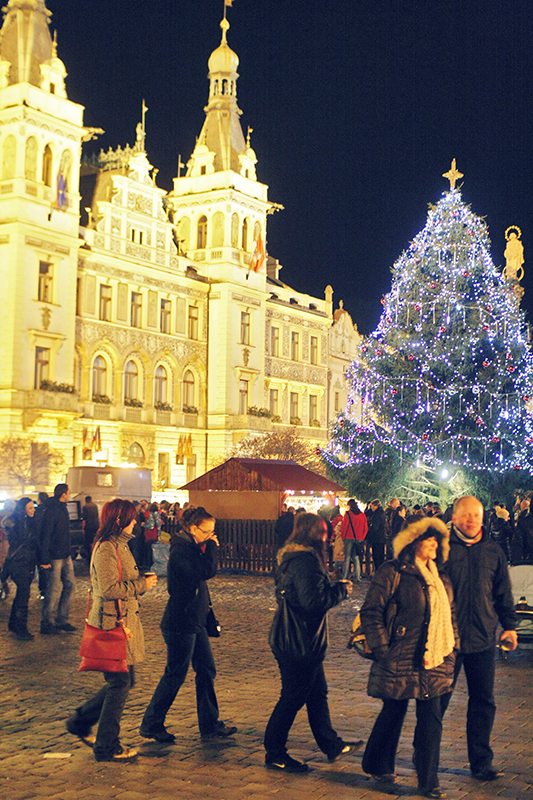 When we arrived in Pardubice in January this year we were alas too late for the Christmas market, so we were determined to check it out this year. This day last week was the day the Christmas tree was turned on for the first time, something I’ve yet to witness outside of my living room. We arrived just in time to see the lights being switched on, which were met with a strangely muted reaction from the large crowd gathered in the square.