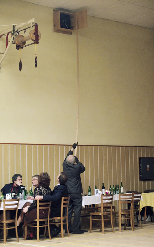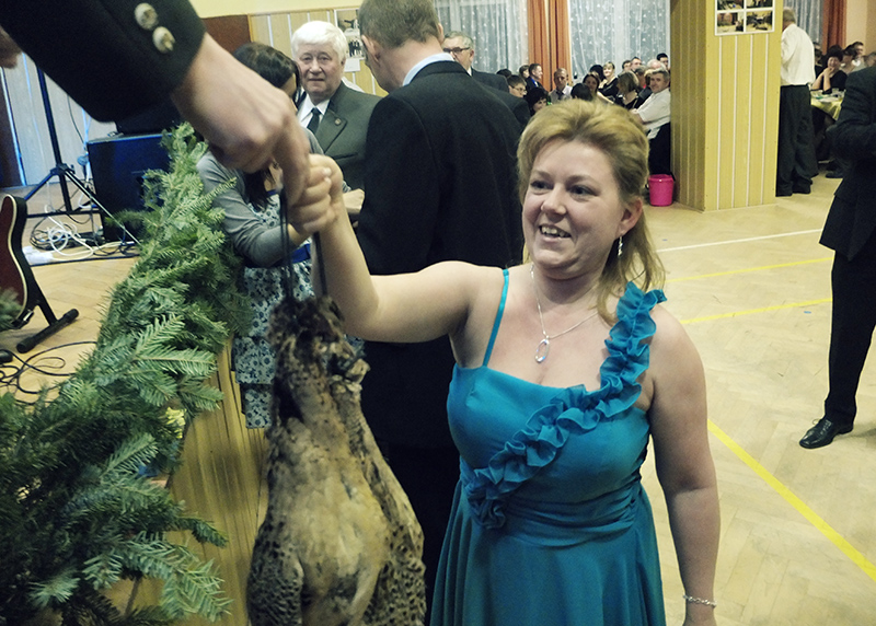 Up on the stage there was a stand lined with pine branches and on this all the various animals that had been killed for the raffle were displayed. There were several ducks and pheasants, a couple of rabbits and deer and the grand prize, a wild boar. These were to be given out to the winners towards the end of the evening in a raffle. Alas we arrived too late to purchase any tickets as they had all been eagerly bought up by the excited guests.
