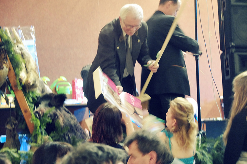 And then it was on to the main event, the raffle. I know there’s many people out there who are horrified by the very notion of hunting, of killing defenseless animals for sport or trophies and I’d tend to agree with them, however it’s also a question of management, of ensuring one species isn’t dominating and damaging the ecosystem and that I fully understand. I wasn’t disturbed by the evening’s events, the sight of dead animals didn’t bother me in the slightest. One thing I did find strange was the way the winners paraded around their prizes as if they themselves had been the one to slay their quarry. This was best seen by the couple who won the grand prize, the wild boar. They triumphantly carried it down off stage and brought it to their table where they placed it on the ground, and accepted the cheers from their fellow guests, these brave warriors, the man in his nice green shirt and his partner in her cocktail dress standing over the carcass of their victory.