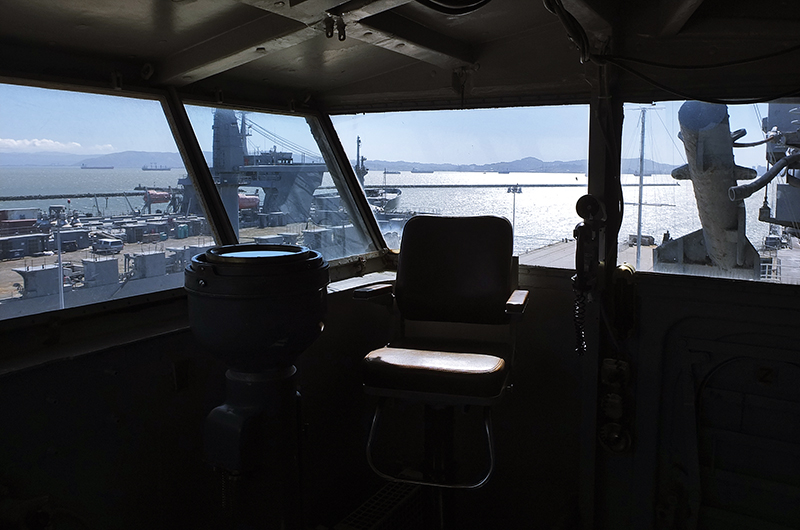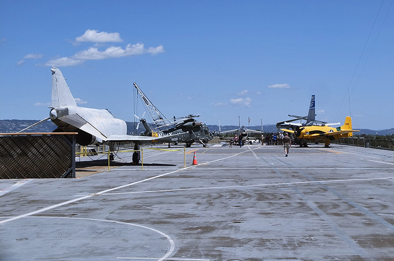 After exploring the hangar bay I decided to venture up to the flight-deck, via the supermarket escalator that is a genuine part of the ship and not just for tourists. There’s more aircraft up on deck and I latched onto a tour group that was up there for a more personal tour. Our guide, Paul Vigeant talked us through the various aspects of the flight deck, from the procedures for launching and capturing planes to some interesting (read horrifying) stories of accidents aboard aircraft carriers over the years. He then took us up into the island to show us primary flight control, navigation and of course the Inception bridge, which is like a bridge within a bridge due to extensions carried out since it’s initial launch.