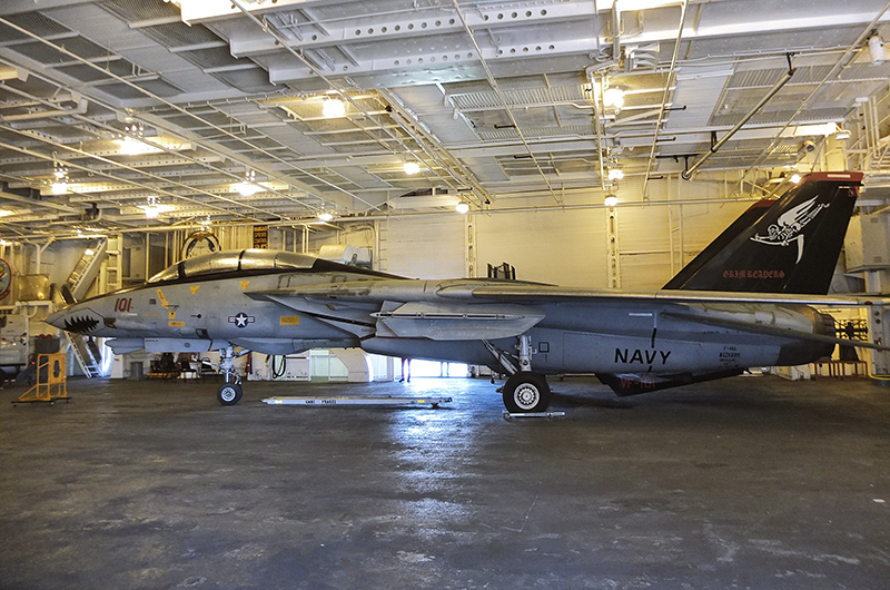 When you step aboard you walk into the main hangar area and BAM! straight away F-14, whooooooh! Now me being the ignorant happy as a pig in poop to see an F-14 up close and personal, ignored the fact that die-hard military historians would have a hissy fit. You see the F-14 doesn’t belong here, and neither does the F-4 Phantom up on the flight deck. But they’re awesome, so DEAL WITH IT.