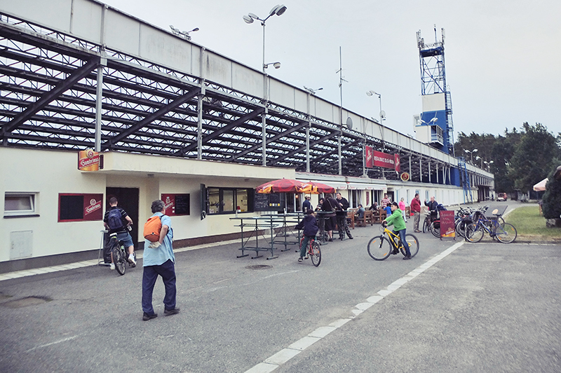 The back of the main grandstand where the all important bar/restaurant is located.You’ll have a great view of the action no matter where you sit at a speedway race, unless of course you’re tiny and sitting behind a really tall, really fat person.This caption is a little tiresome.The riders make their way to the start line for the traditional first lap which takes place on foot. The girl in the yellow dress won*Surrounded. Speedway is very much a male sport. There was a healthy mix in the crowd though which was good to see.One of the Pardubice team waves as his name is called out. Either that or he saw his mum in the crowd.The finish line doesn’t last very long and needs regular topping up.Local press getting to hang out in the juicy picture taking spots, bastards! 🙂The brolly girls let the riders know which way to line up at the start of the raceGetting ready to turn left a lot.And they’re off!Neeeeeeeeeeeeeeeeeeeowm vrooooom etc.Cheeky look behind to see how much ass he’s kicking.Vrooooooooooooooom neowm brum brum.The action was being recorded from all angles, must check if i’m on TV.Vrooooooooooooooooooom.Aw they left him hanging, no high fives for you.Grabbing air at the start of another heat. It’s like a bucking horse, which is funny as Pardubice’s crest is a horse, well half a horse (See previous posts for an explanation of that one) and the bike has horsepower so yeah lots of horse based imagery going on right here. Naaaaaaaaaaay.Vrooooom Neeeeeowm Vroooooom continues.Such skill these guys have, it’s awesome to watch.The riders often go over the inner line of white chalk to kick up a cloud into the following riders face….jerks.One of the riders is framed inside the goal posts of the football pitch that sits inside the oval. No there wasn’t a game on, although that would have made for some spectacle!Watch your toes loves, coming through….I mean neowm vroooooom vroooooom……yes.Whooooop whooop i’m the winner.One of two tractors that fix the track between heats.This chap lost control through turn one and had to bow out.“Hello ladies”It’s a clean sweep.Laying down some moisture ensures the track is in perfect condition for racing.The most confusing traffic light system ever. Not really the lights flash depending on which rider is having a problem.Get him! One of the Pardubice riders gives chase.Meeeep meeeeeep coming through.I made the error of walking along the side of the track during a race and promptly had several stones flying at my face and horrifyingly close to the beers.A lovely Jawa, no not the short rodent-like natives of Tatooine but the Czech manufacturer of speedway bikes.Skating home with the guys after a most pleasant evening.Our route home took us past the Paramo plant which is in the process of shutting down. Would love to do an exploration of this place!