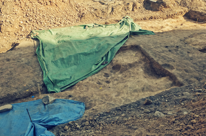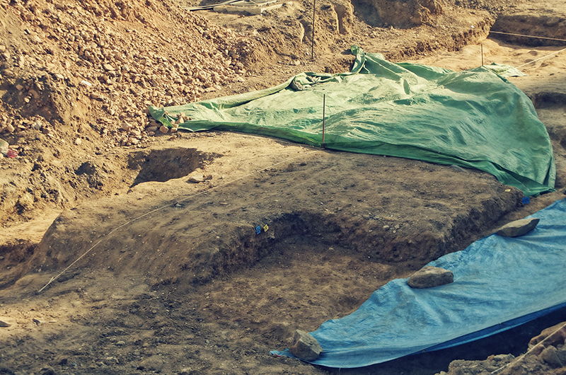 The other day while making my way through the obstacle course presented to me that morning, I noticed one of the fenced off areas looked a little different. There were numerous small holes where usually there would be one or two massive ones several feet deep. These holes were bordered by string suspended above them, like you’d see on an archaeological dig or the early dig scene in Jurassic Park. “That doesn’t look very scary, more like a 6 foot turkey!”. Aaaanyway where was I? Ah yes, holes and digging and history and what not.
