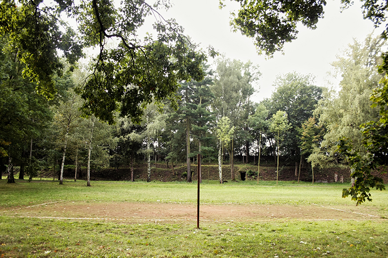 EDIT: Thanks to Martin Kaltoun, a lovely chap from Pardubice for filling me in on more details of the site. In his words “This place was training ground for railway troops. Back on river is other abandoned bridge. The building with red stairs was officer’s Club. The remains of stone bridges behind cemetery and pillar near hospital were for training for the establishment of railway bridges. Buildings with volleyball court were military swimming bath (until the end of 2WW), then there was the SVAZARM”.