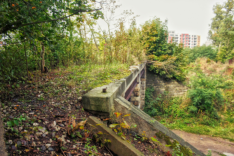 I made my way back out again and doubled back to the bridge over the Chrudimka and crossed over, hoping the path on the other side of the river would carry on towards the aforementioned bridge. On my way down along the path through the woods there were some other interesting places such as an abandoned building that I wasn’t sure had people in it or not so I decided to just walk around the outside. Then there was what looked to be the makings of another bridge with a huge 30ft tall concrete column looming up out of the forest but with nothing else attached.