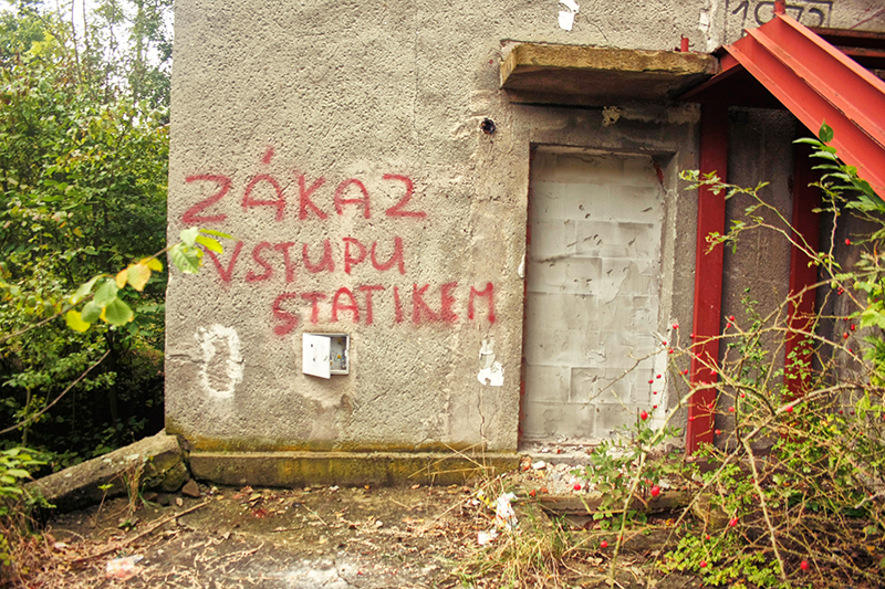 I came back down from the tracks and looked for other interesting things around about. The path quickly ran out however and was reduced to a much smaller one broken through the hedgerow over the years. I followed it through, pushing branches and plants aside until it came to a fence on the edge of the facility. Someone had torn a hole in the fence and I could have gone inside but decided against it as I didn’t fancy getting in trouble with the Czech police if I was caught trespassing.