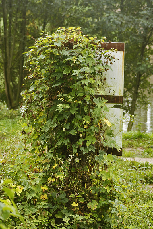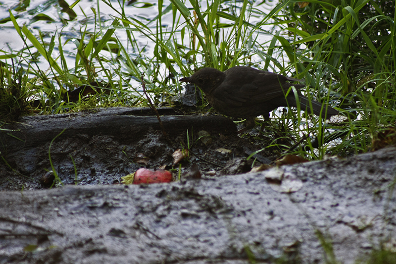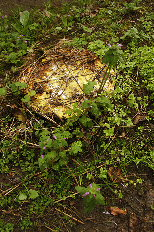 The pathway seemed to turn away from my target location so I decided to go off the beaten path a bit, or at least the paved one and headed due West into the woods running parallel to the river. The trees and bushes hung low along the path but it was fairly easy to get through as the path had clearly been used by vehicles as it had that typical line of dirt on either side with fresh grass in the middle. It was actually a really pleasant little path despite the mud. Birds were singing in the branches above, or outright screaming their lungs out from a hedgerow to the left. Apples littered the ground along with various berries, leaves and….garbage. There was one area that looked like a dumping ground for commercial waste, from say a building site or something like that. Shame to see it but it’s a sad reality when people want to cut corners.