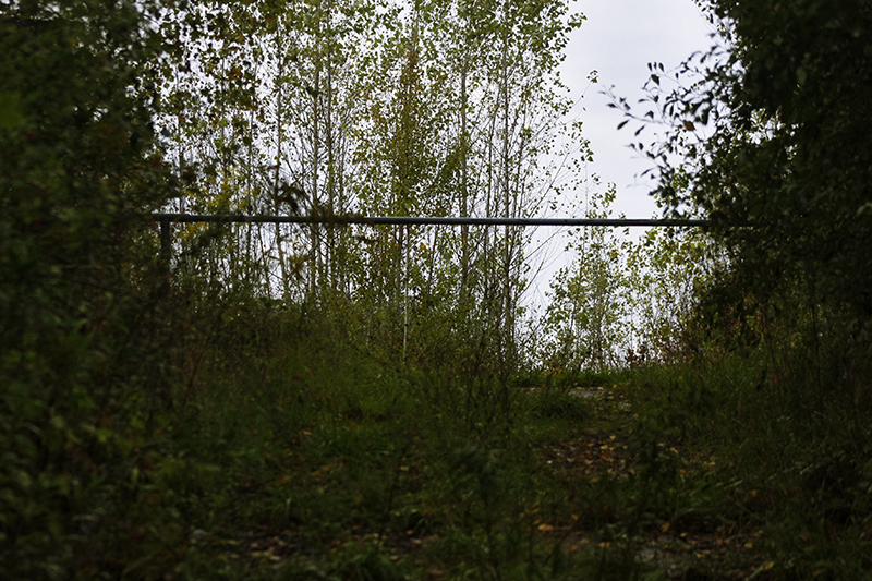 I made my way up the hill and came across a barrier, and just like the one in Bozy Dar, it wasn’t really going to keep much out so I shimmied underneath it and found what I had come to check out. The path opened out in both directions and I took the left fork. All along the right hand side ran a green pipe, snaking it’s way down along and into the distance where the path and it disappeared from view.