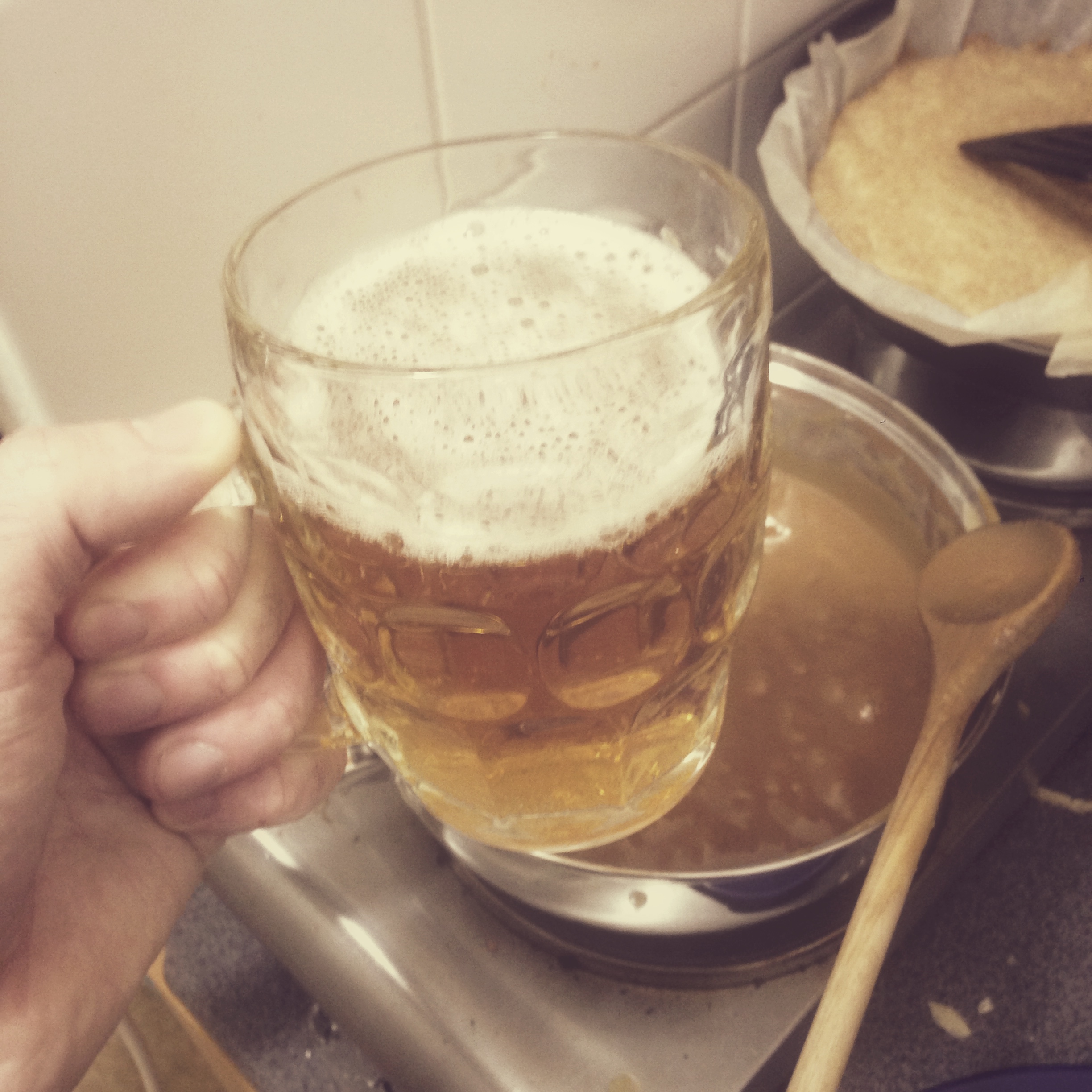 Stirring is tiring so be sure to take a well earned break with a nice cool glass of Kozel half way through.