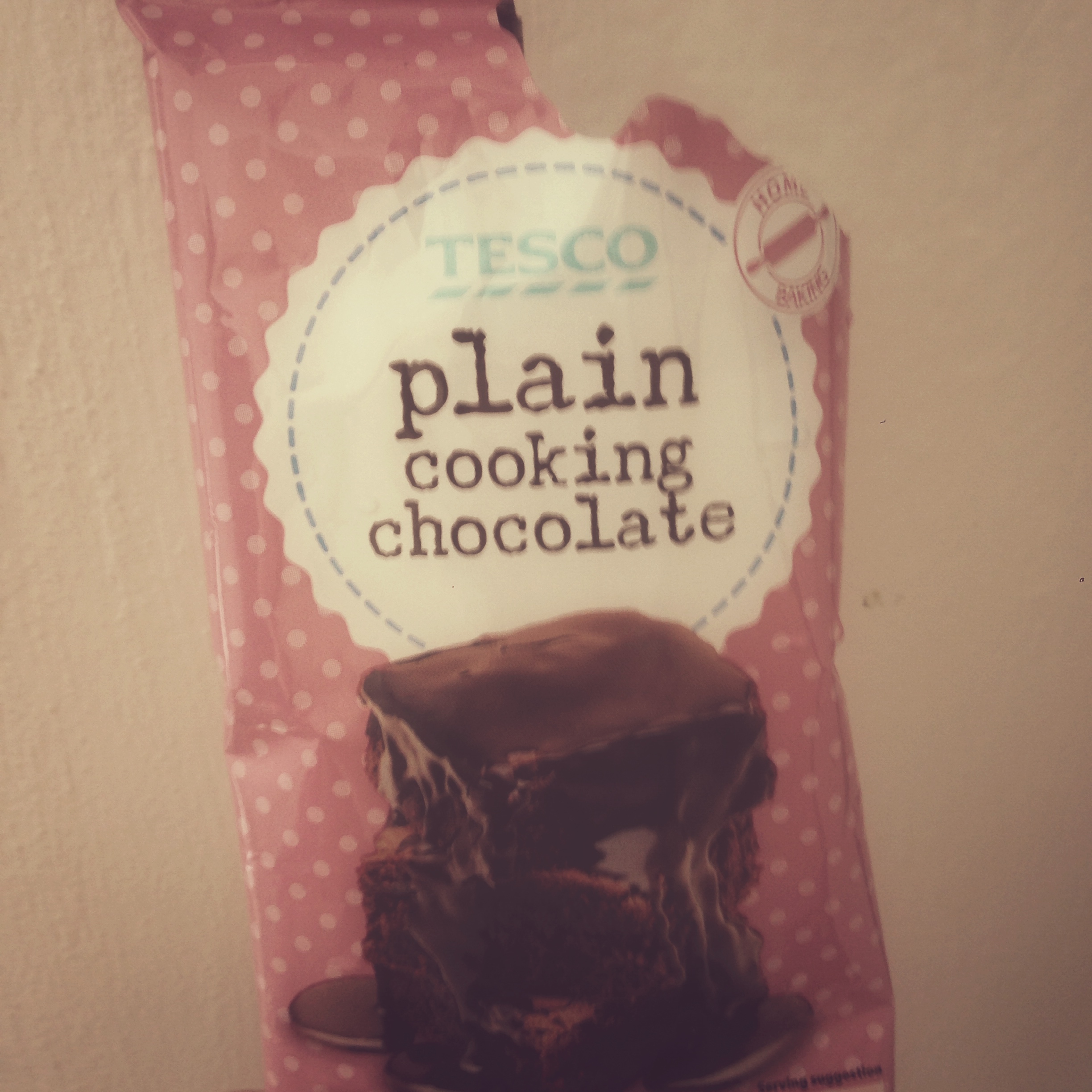 I use this Tesco brand of plain cooking chocolate which is really nice and has a great flavour. It says plain but it’s actually quite dark.