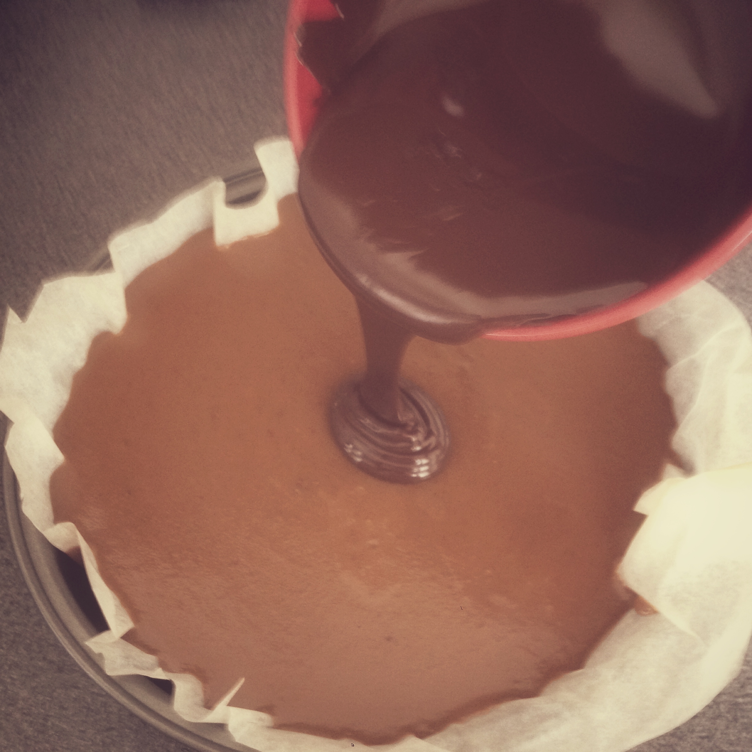 Eh voila! Ebola cake! Not really it’s just how the chocolate poured out from the spoon in a creepy Ebola-like shape on top of the initial chocolate layer. Don’t worry it smooths out in the fridge.