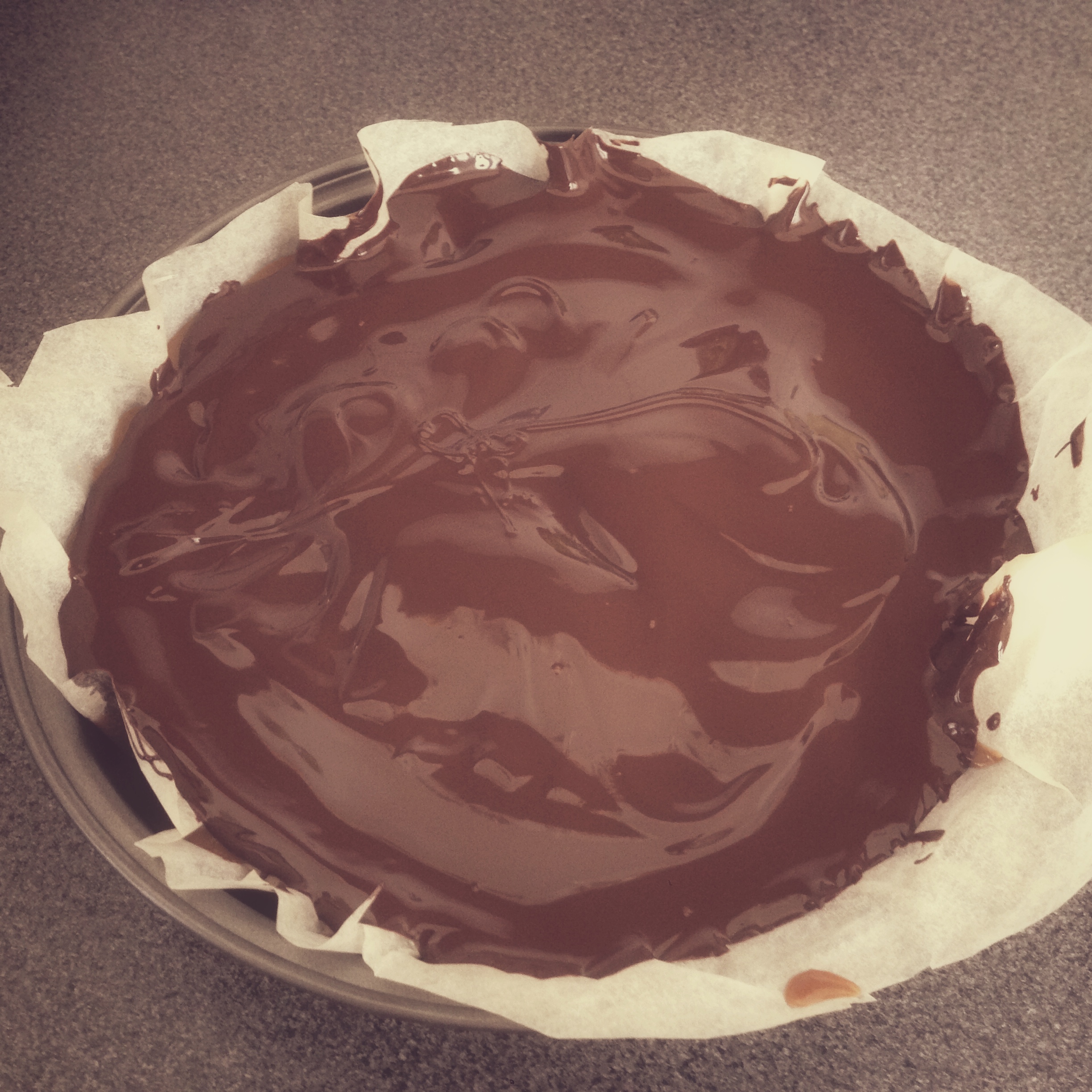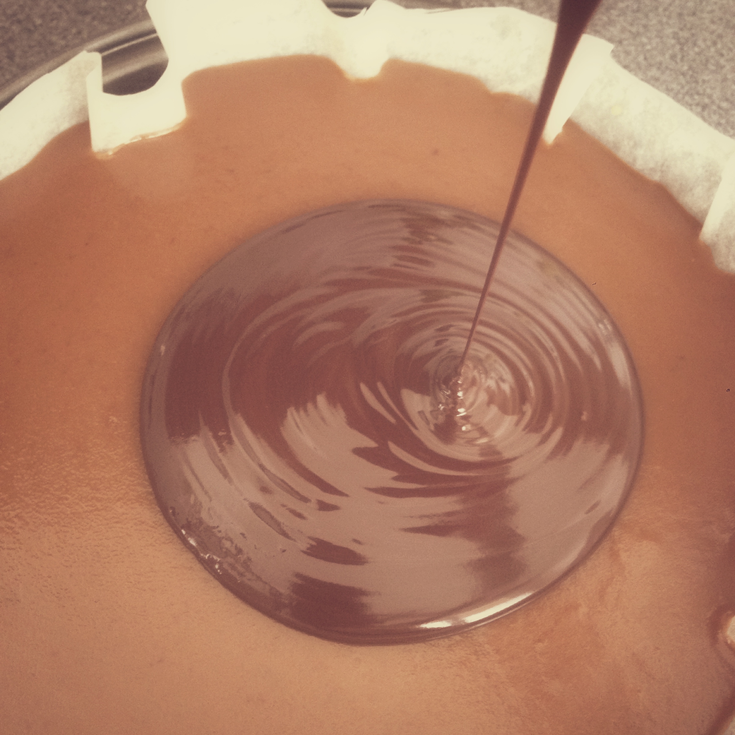 Mmmmmmmm chocolate. Ready to be poured over the caramel.