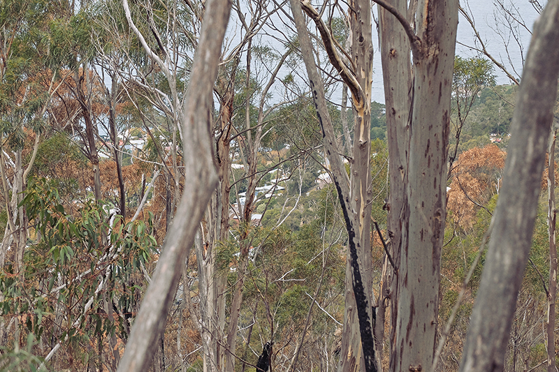 I chose to make my way down to the bottom from Mount Nelson Signal Station and began in the not too dense Eucalyptus woodlands near the summit of Mount Nelson. There had been a controlled burning of the area in recent weeks and as a result one side of the trail wasn’t the most picturesque with a charred landscape on display instead of the more vivid and flora filled view on the right hand side. It was still interesting to see the effect of the burning and how it clears the way for fresh growth to come through and for the forest to renew itself once more.