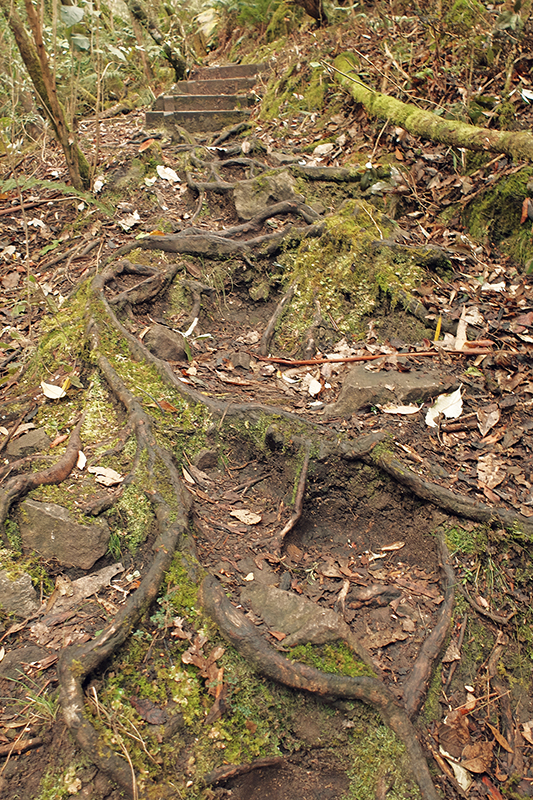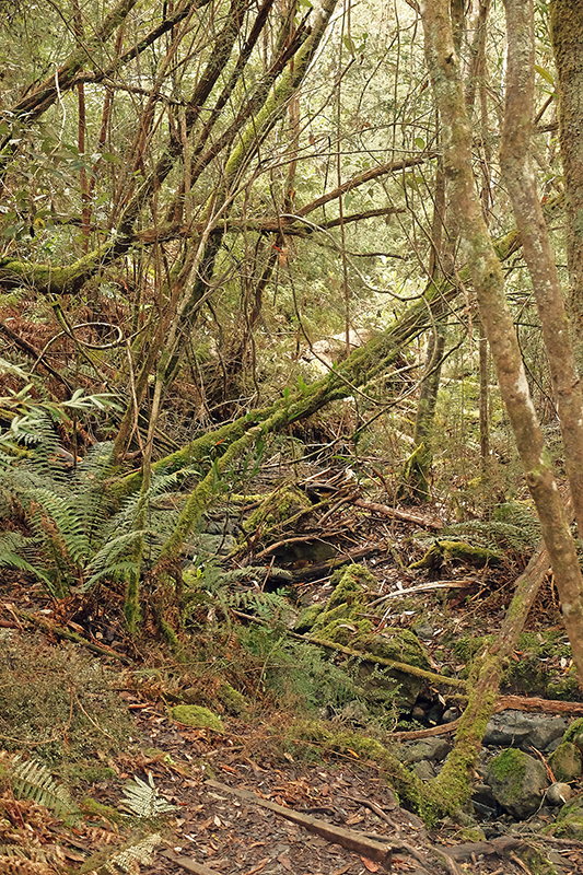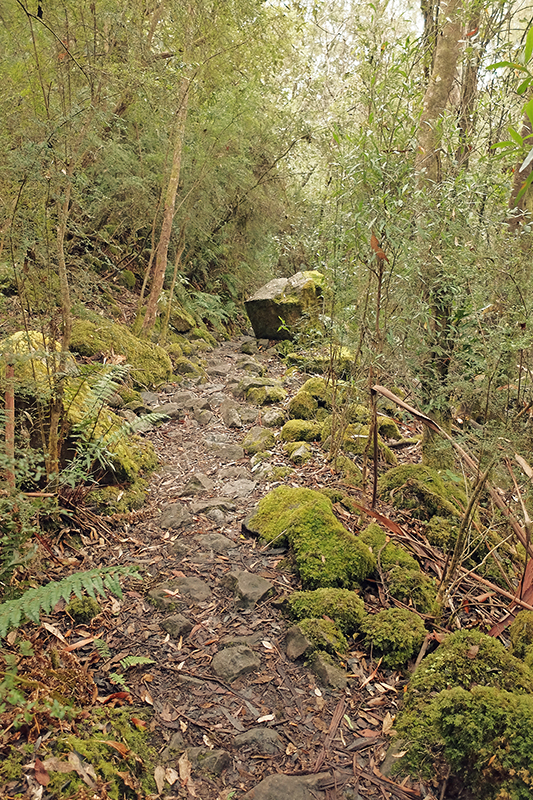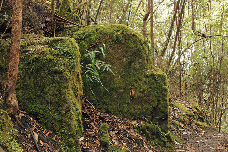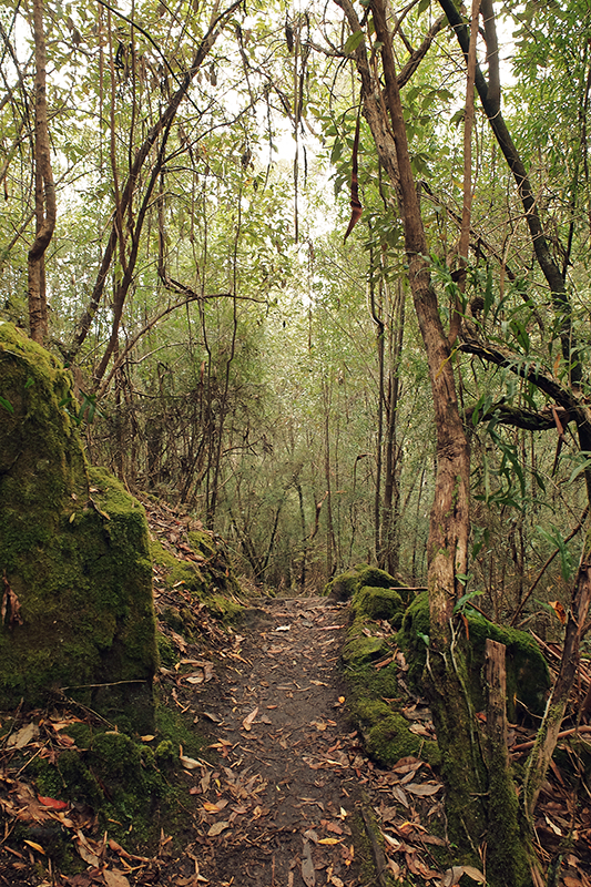 As the path descended the undergrowth grew thicker and at times it became difficult to see the path but that’s what adventuring is all about. The trail continued downwards into the Cartwright Reserve and joined up with the Cartwright Creek, a small trickle at this time of year that brings water to the vegetation on the slopes. The dampness brought about by the creek changes the scenery considerably as you descend, with the dryer Eucalyptus trees giving way to ferns and damp moss covered logs. The air turns a bright green as the plant matter overtakes everything and leaves every surface damp with moisture. There had been a small shower just before I began my hike and so the trail was somewhat slippy in places so you will need to have your wits about you and wear suitable footwear.