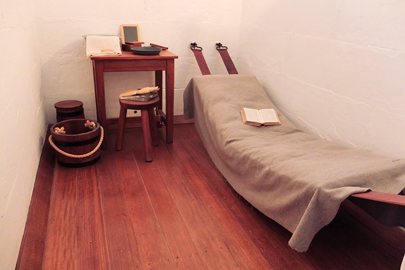 It wasn’t all just education and labour though, this was a penal colony after all and that meant punishment and discipline as well as religious and moral instruction, classification and separation. Port Arthur’s Separate Prison was constructed in 1853 and based on Pentonville penitentiary in England. It was here that prison rules were strictly enforced. Convicts were locked up 23 hours a day in solitary confinement, forbidden from making any noise so that they could dwell on their crimes. When they were allowed out of their cells for mass or exercise they had to wear masks and stand in individual cubicles inside the chapel unable to see their fellow inmates. The guards communicated with sign language to ensure complete silence and only when they were locked in their cells could the convicts remove their masks.