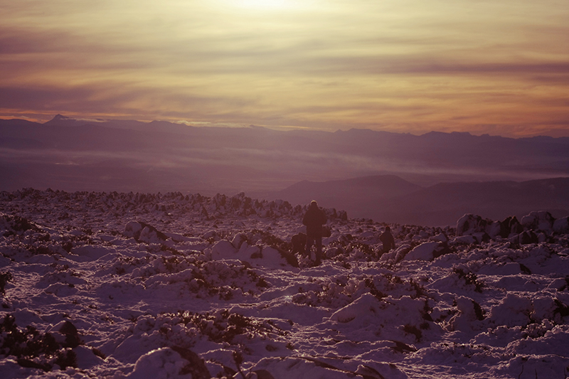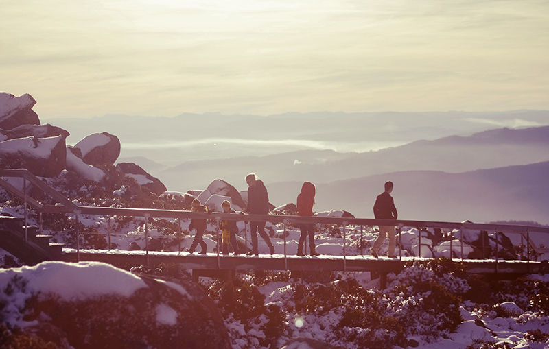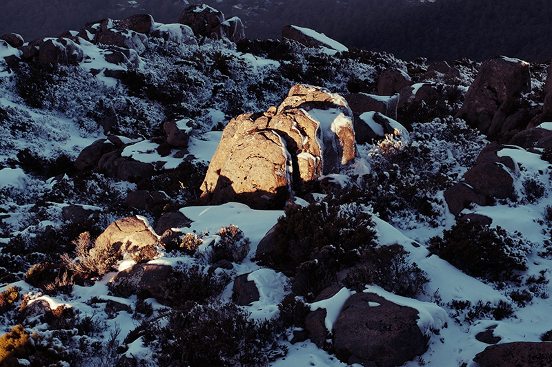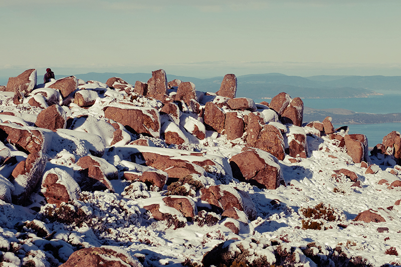 It was a sunny Sunday, the final day of the Dark Mofo festival, following a few grey dreary days in Hobart. Needless to say the drive up to Mount Wellington was proving to be a popular activity that day and the car park at the summit was close to bursting point. We found a spot after a brief wait and excitedly hopped out of the car to explore our surroundings (play in the snow). Myself and Niall immediately set about finding the best angles and scenes to photograph while Sinéad and the Catalans began an impromptu snowball fight. They may well be Post-Doctoral Analytical Chemists but that doesn’t matter when you’re faced with a whole mountain full of fresh snow, it’s time to have fun!