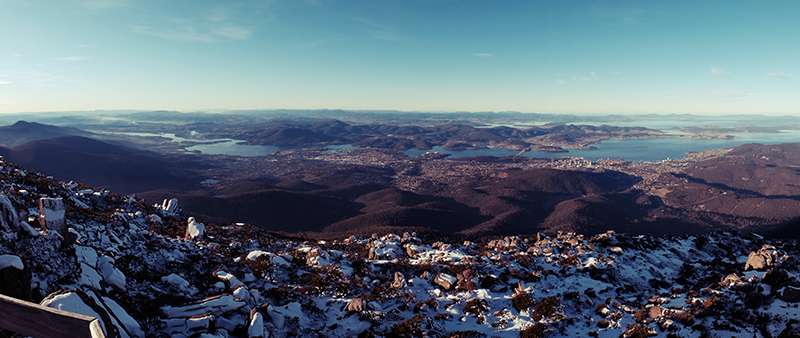 All around us there were families and friends enjoying the snow and taking in the amazing views. Hobart looked like a tiny little village down below, the steam from the various industries further up the Derwent estuary looked like mere camp fires. The summit offers commanding views of the whole area and for those not wanting to bear the brunt of the cold alpine air there’s a nice heated viewing building with benches to sit down on and take in the view. With the heavy snowfall it was possible to walk pretty much anywhere you wanted around the summit however I can’t wait to see it in the Summer months where I’m sure it will be a very different picture and the possible routes between the rocks and foliage will be far fewer.