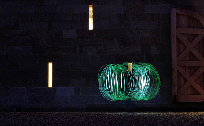We did a spot of light spinning photography later in the evening. Given all the wood in the barn and stables it was wiser to go with LEDs as opposed to the usual steel wool which gives off those epic sparks.