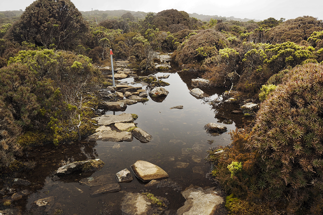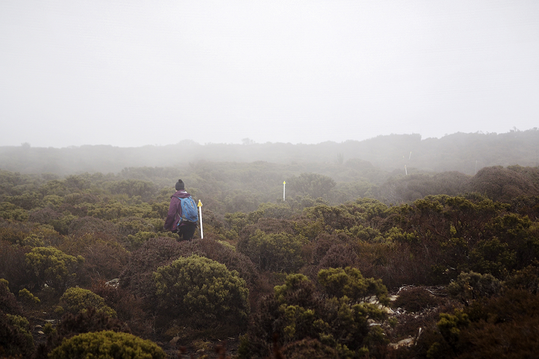 The summit of Quamby is an interesting one and surprisingly damp given the relative dryness of the slopes on the way up. A series of metal poles with arrows on them light the way to the actual summit. They came in handy on the day we were there, as there was a bit of cloud cover shrouding the top in a misty haze.