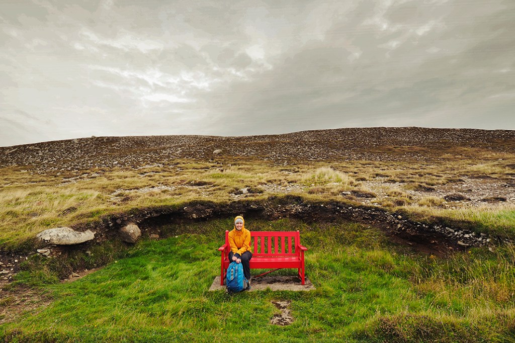 Gemma taking a breather on a random bench in the middle of the desolate surrounds.