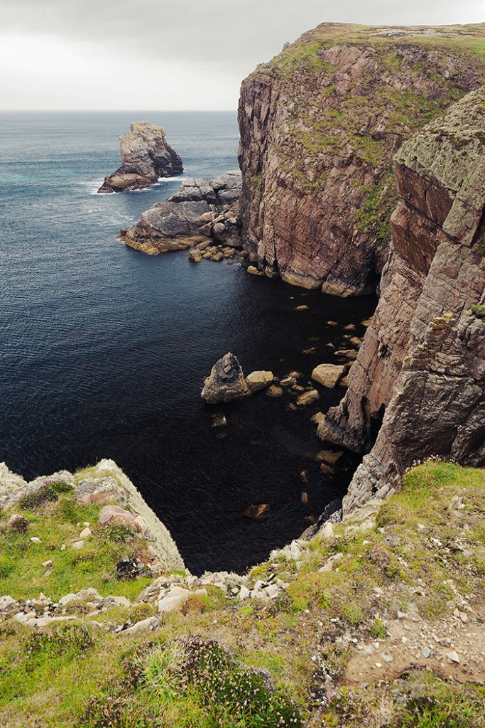 The weather which had been somewhat alright….ish, started to go a bit sour and the winds picked up. We struggled onwards to the peninsula where Balor once reigned. I was navigating via Google Maps and noticed that we were rapidly being cut off on both sides by the sea. Sure enough as we got towards the end of walkable ground we were indeed surrounded by huge cliffs that dropped off straight into the North Atlantic below, definitely a good spot for a fort!