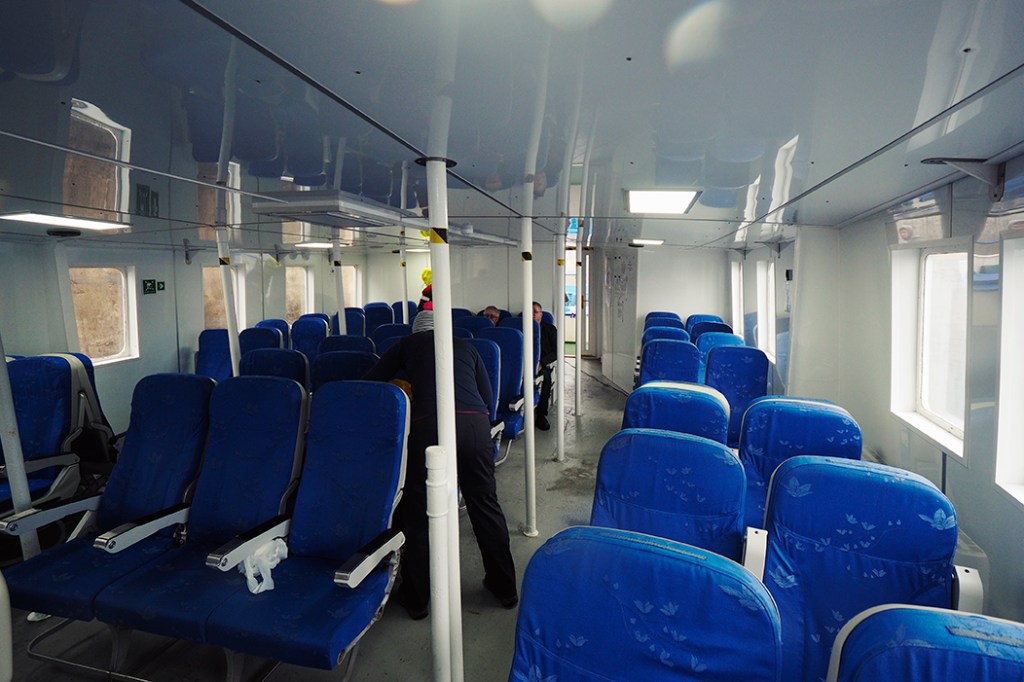 We boarded the ferry after the locals had brought on their menagerie of bits and pieces and were promptly handed sick bags by the friendly crew…..great. Off we set and for the first couple of kilometers it was actually kinda nice, albeit grey and muggy. Then we got into the deeper water, which we could see on the hand display screen which showed our heading and the depth of the water below us.