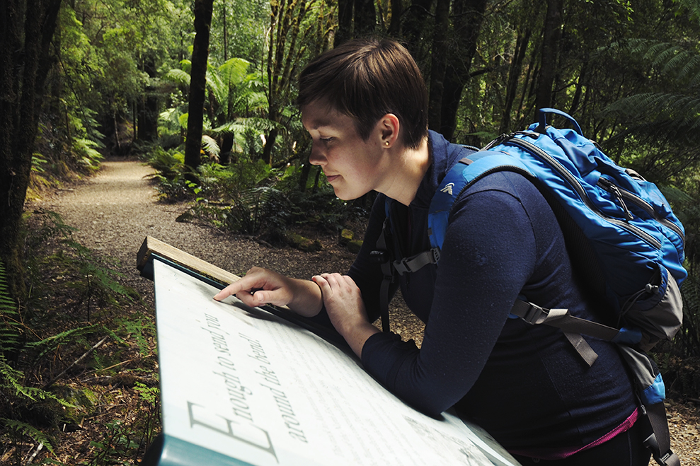 After enjoying the coastal splendour of Henty Dunes, we headed back inland towards another fantastic and easily accessible drawcard, Montezuma Falls. The track to the falls is built along the footprint of the original North East Dundas tramway which once snaked its way through this valley as part of the area’s mining heritage. The tramway was shut in 1932 and although parts of it remain, the majority of the track has now been replaced by nice smooth gravel that makes the walk to Montezuma Falls a veritable walk in the park. It is a long walk however at 8km and we saw a number of people scoff at the estimated time on the entrance sign and return to their cars. As I’ve said many times on this blog, stunning views should be earned, it gives you a greater appreciation for the landscape.