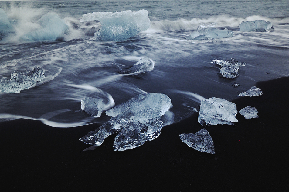 The second aspect of Jokulsarlon is the beach where the icebergs get broken up and pounded into the very sea they’ve joined. It’s a fascinating process and the sight of huge blocks of crystal clear and white ice in stark contrast to the black sand beach they wash up on is one of my favourite memories from the trip.