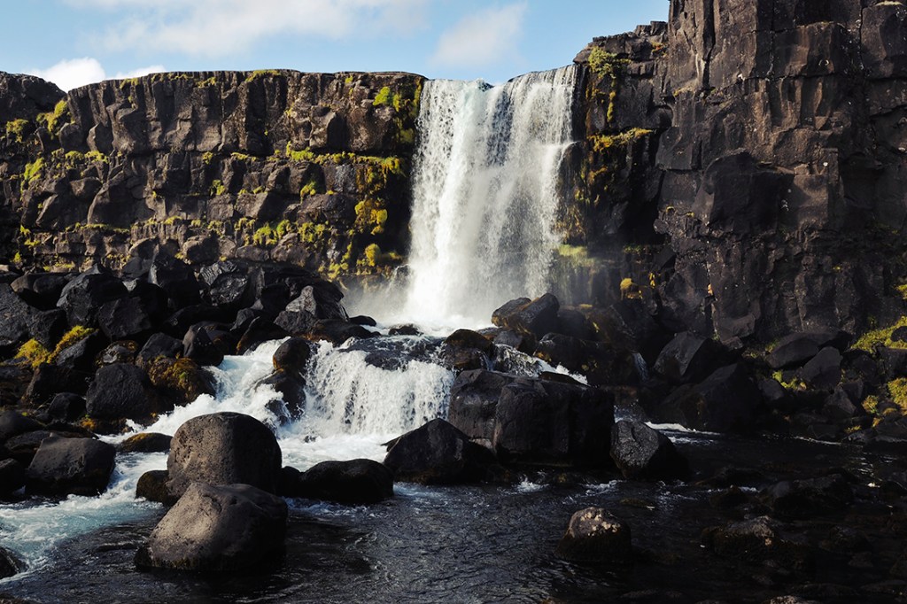 Öxarárfoss in Þingvellir was a beautiful little waterfall cascading over the edge of the cliff face and had a really nice decked area where you could sit down and just enjoy the view.