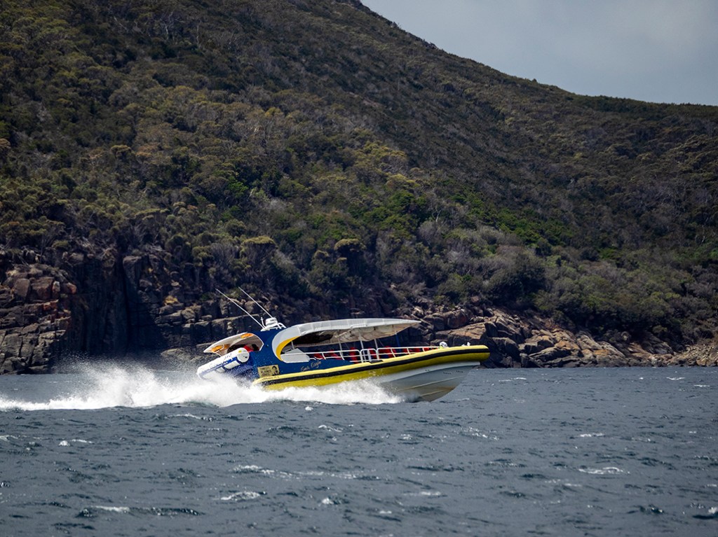 We promptly set off from Pirates Bay, the 750hp worth of engines powering us along the water with ease. Exiting Pirates Bay we were soon flying past some impressive cliffs before slowing down and checking out iconic sights like the Tasman Arch and Devil’s Cauldron. It was fascinating to see them from a completely different perspective and you really get a sense of the power of the ocean that carved out these huge structures into the rock.
