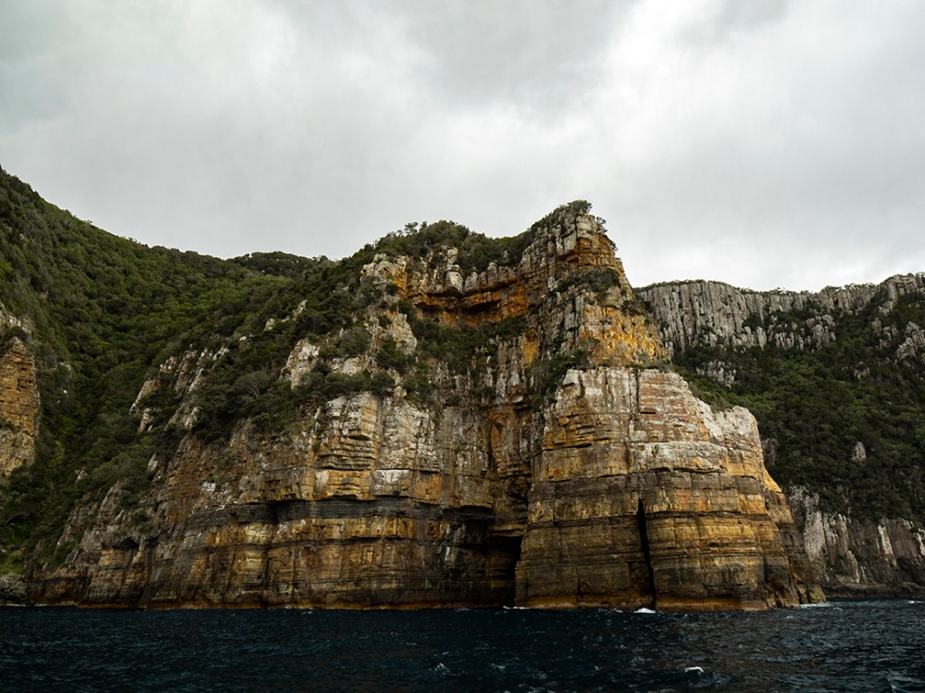 Following a quick safety briefing, we all took our seats depending on our propensity for enjoying getting wet and/or enjoying a bumpy ride. If your stomach is a little on the tender side, you’ll want to sit down the back. If you love a bit of hooning on the ocean, strap yourself into the front seats. In the days leading up to the trip, our lovely host Chelsea from Hobart & Beyond had shared concerns about the weather saying it might be a bit touch and go. The day itself turned out to be glorious, with the huge sea cliffs protecting us from the Westerly winds that had been blowing hard.