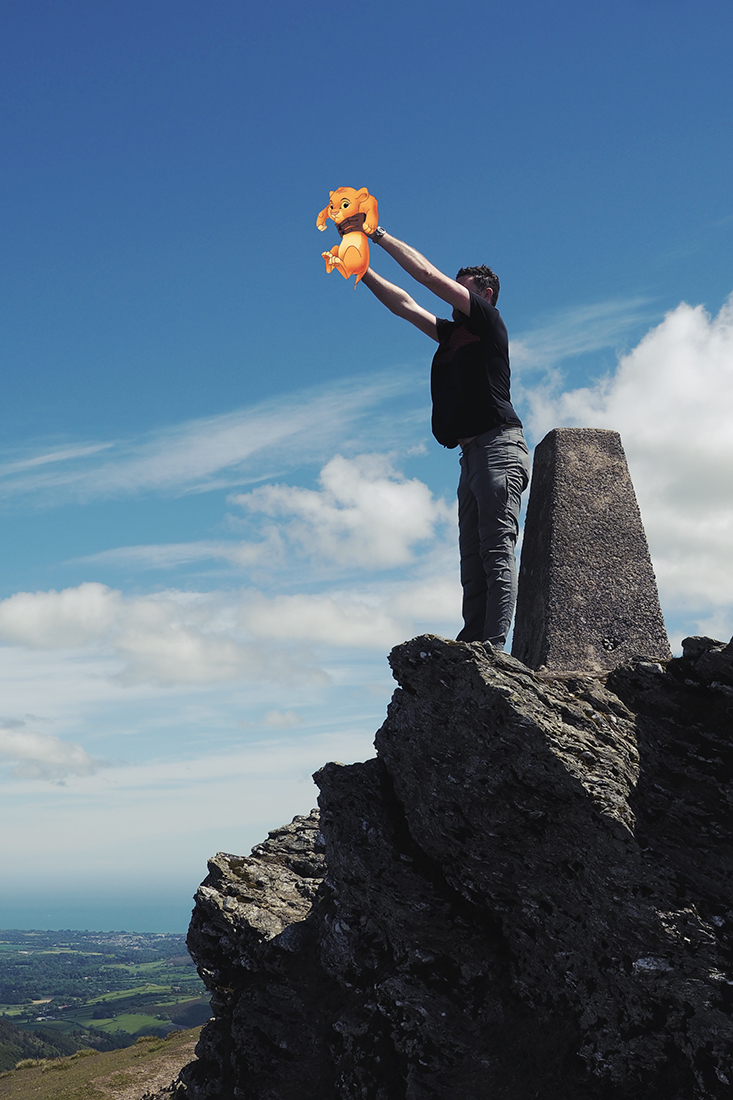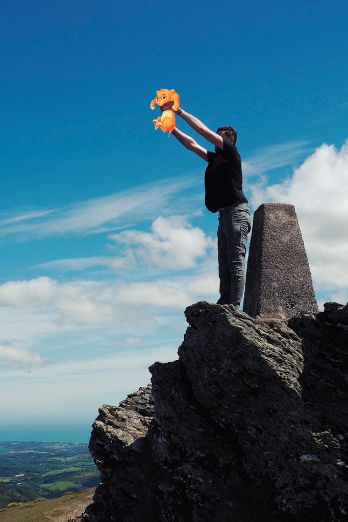 The summit is easily reached and the path to the top is plenty wide to allow ascenders and descenders to give each other room without having to step on any fragile boggy areas. The tippy top is marked with some large rocky outcrops that glisten in the sun due to their phyllite & schist composition. We stayed a little while on the summit, messing about and noticing the Pride Rock vibes before continuing on over the other side and down towards Powerscourt Waterfall.